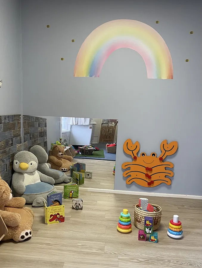 Our baby room is designed to create a safe, welcoming and stimulating space to meet the specific needs of our young babies. In this room every detail has been carefully considered to create a space that promotes a sense of comfort and early development.